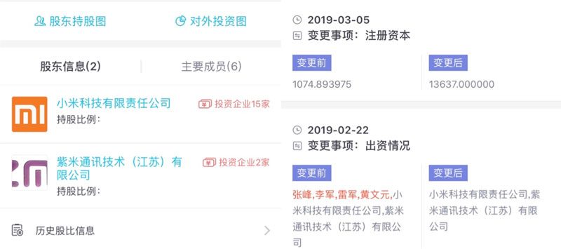當然,生態鏈企業的壯大,也會充實小米集團的營收。2月26日,雷軍、張峰和李軍、黃文元等人已經退出了小米生態鏈企業江蘇紫米電子技術有限公司的股東行列。雷軍退出股東后,股東變更為小米科技責任有限公司和紫米通訊技術有限公司,其營收或將計入母公司,帶來更好的財務表現。