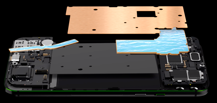 有了更為強勁的處理器,想要維持穩定的游戲表現,就需要更好的散熱系統來壓制運行時產生的熱量。為此,黑鯊游戲手機2將液冷系統升級到了3.0,官方稱之為“塔式全域液冷系統”。