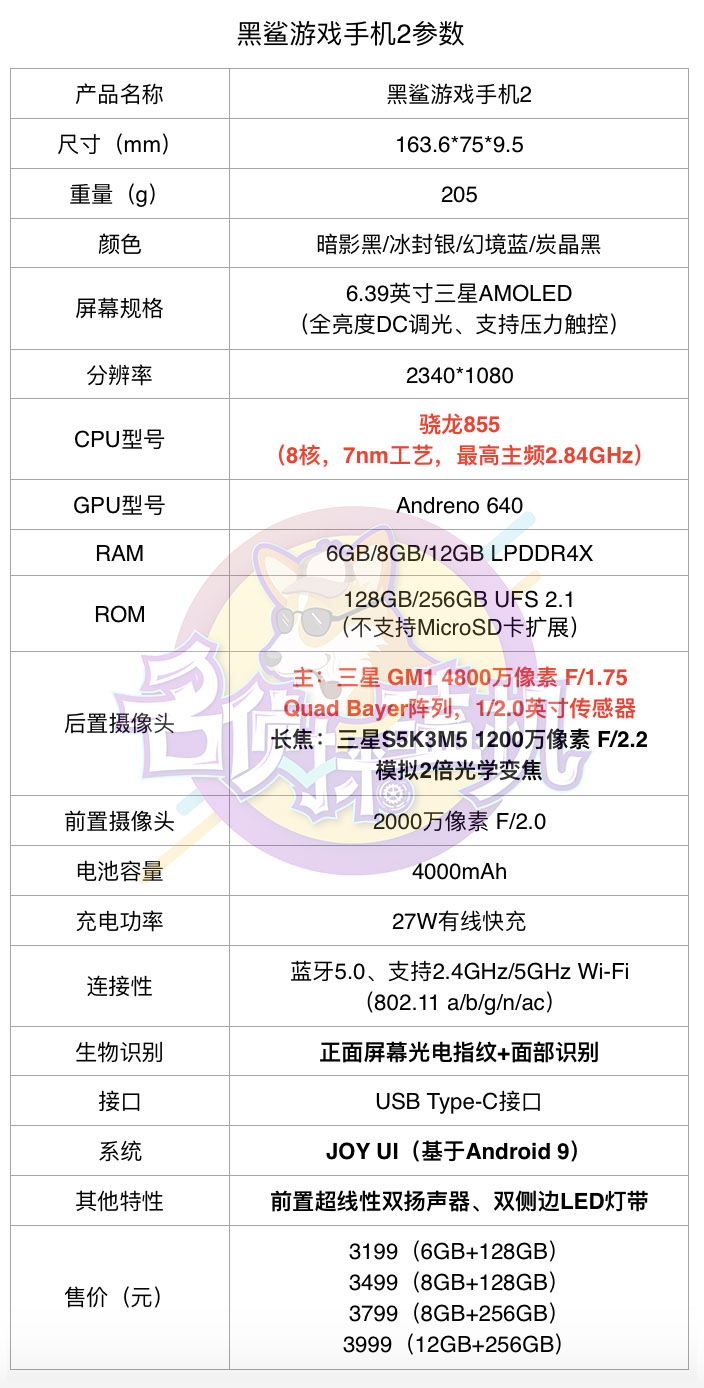 作為給游戲發燒友量身定制的手機,黑鯊手機2采用高通目前最頂級的旗艦處理器——驍龍855,可以說是毫無懸念的。相比前代驍龍845,驍龍855在CPU性能上提高約45%,GPU性能提高20%,此外在AI運算能力也有了成倍的提升。