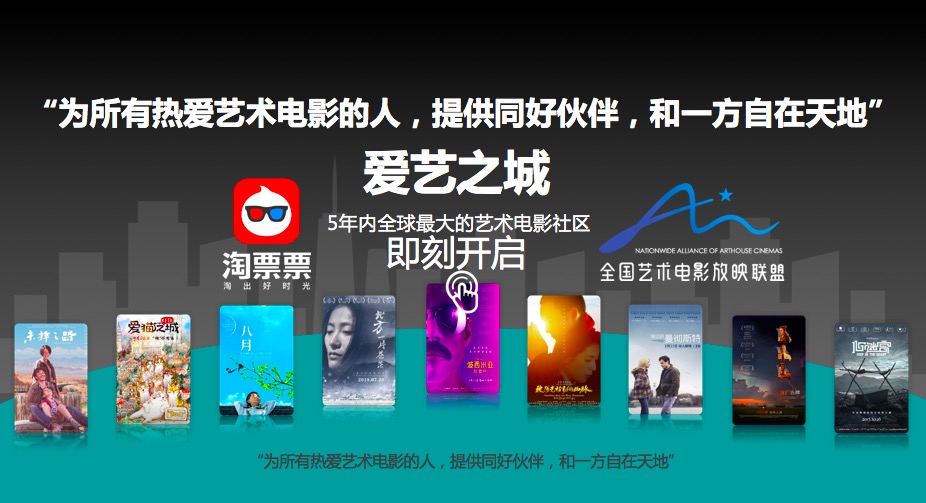 “目標是在三年時間,最晚不超過五年時間,打造出一個全世界最大的藝術電影粉絲的互聯網社區,定名為‘愛藝之城’,我們將在今年5、6月份開啟這個社區,讓所有喜愛藝術電影的人共享一方自在天地。”在近日舉辦的北京國際電影節藝術電影論壇上,淘票票負責人宣布淘票票將打造全球最大的藝術電影用戶社區——愛藝之城。