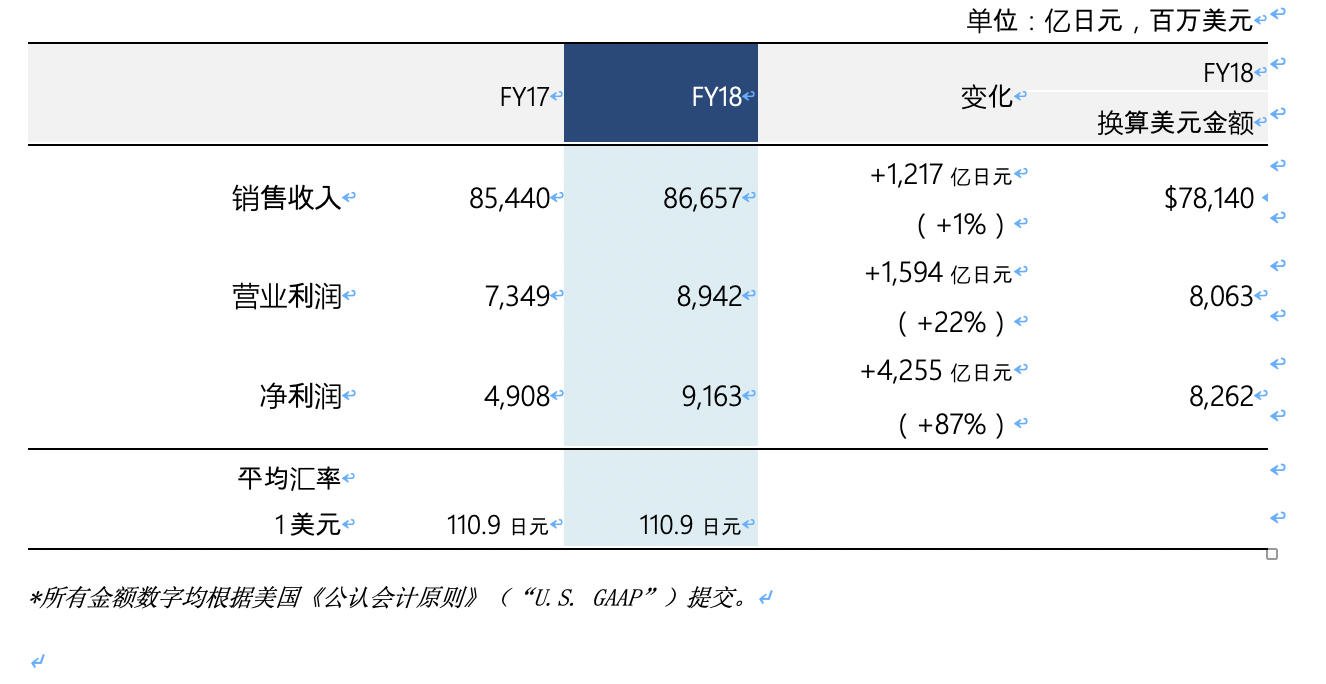 2018財年是吉田憲一郎先生作為索尼總裁兼CEO任期的第一年,也是第三個中期計劃(2018財年至2020財年)的第一年。集團營業利潤同比增長22%,達到8,942億日元,凈利潤增長達87%,達到9,163億日元。索尼在華各項業務總體增長達14%。