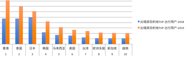 香港、泰國、日本、韓國、馬來西亞、美國、臺灣、歐洲等是人們最青睞的出境旅行目的地。緬甸、菲律賓、柬埔寨、老撾、塞爾維亞、捷克、俄羅斯、土耳其等小眾目的地熱度上升也較快。