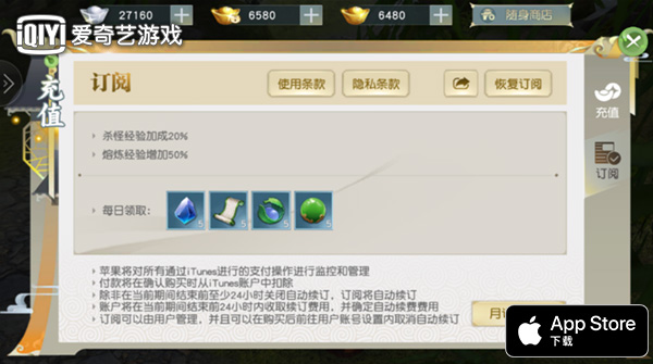蘋果特權——訂閱功能,支持iTunes訂閱功能,并且可以方便地進行自動續訂,享受訂閱BUFF加持。