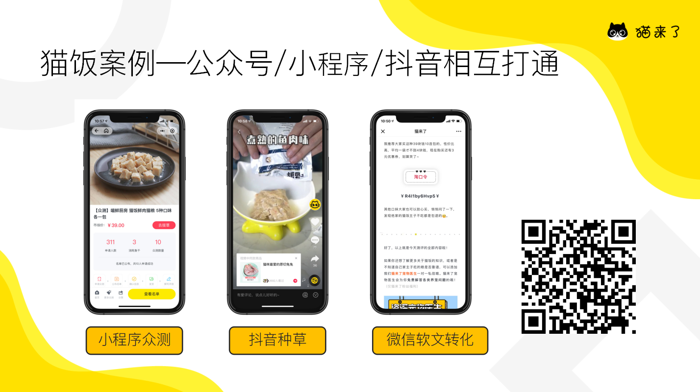 貓來了的小程序,專門開發了眾測功能。以這個功能為窗口,我們打開了一套新玩法:“眾測體驗”-“收集反饋”-“官方推薦”-“銷售轉化”,我們聯合品牌產品,玩閉環的營銷傳播。