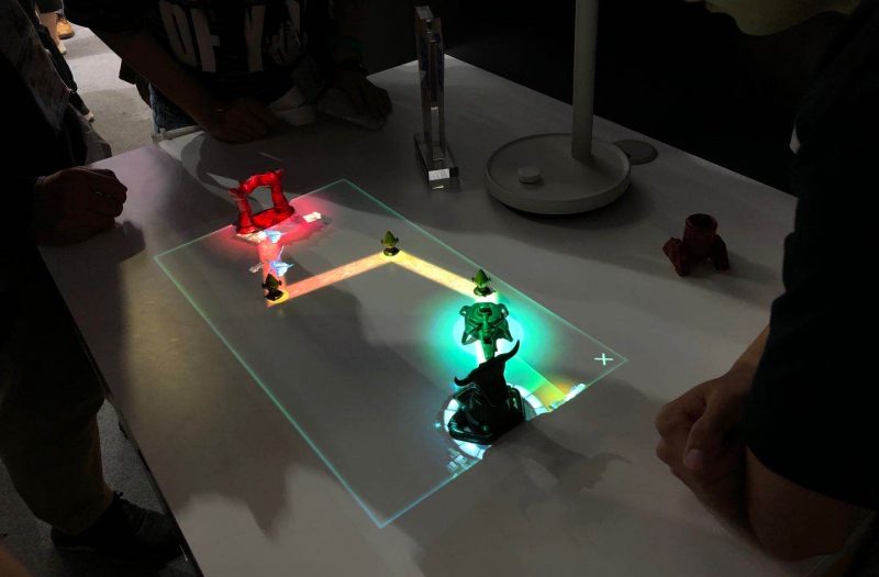 ToF另外一項有趣的應用,便是斬獲本屆CES Asia創新獎的Pico Air Light,基于目前計算機視覺和人工智能技術,其不僅可以向目前的家用平面投影設備一樣向平面投影同時可以用手指在平面進行多點觸屏操作,由于集成了ToF深度信息檢測功能,還能3D識別物體、基于識別的物體或輪廓展示相關信息。Pico在現場演示了基于3D物體識別的塔防游戲,在游戲中,玩家可以用現實中的3D物體設定塔防路徑,并通過移動武器模型改變攻擊點。