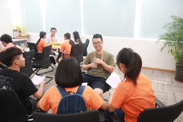 隨后登場的是極光網絡美術中心12位公益大使,他們來自不同組別、崗位,有角色原畫、場景模型、美宣、動作、特效、GUI等等,雖然基本都是美術背景出身,但是人生、職業經歷均不一樣,公益大使分成小組與學生們進行深入的交流討論,讓高中生們頓感新奇、大開眼界,感受良多。