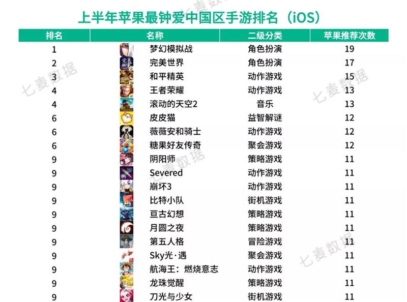 七麥數據總結了“中國上半年手游行業七大關鍵詞”——“手游出海”、“超休閑游戲”、“AR游戲”、“女性向手游”、“游戲影視化”、“跨界合作”、“移植熱”。通過七大關鍵詞,即可梳理回顧上半年手游行業發生的“大事件”。
