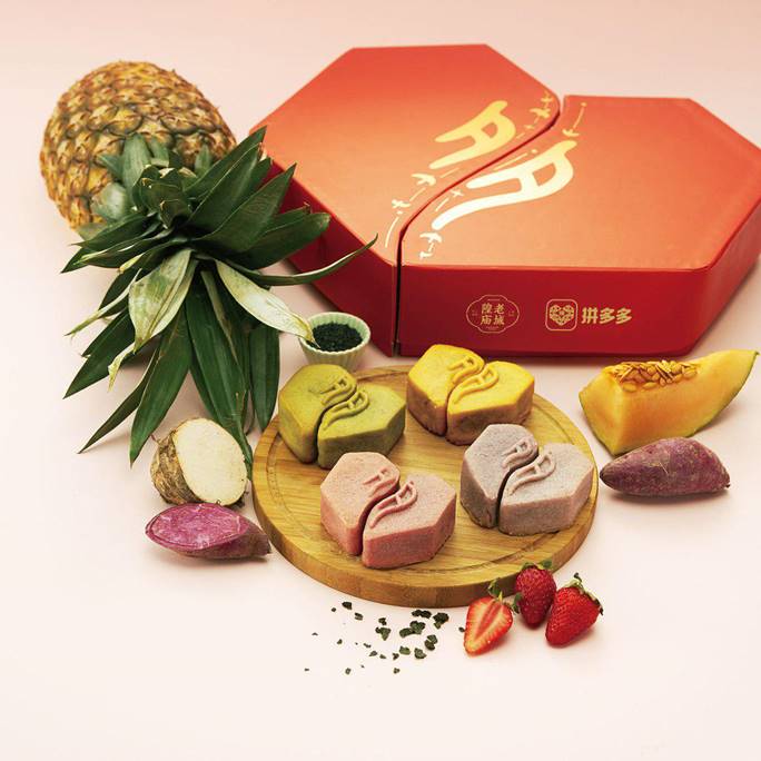 作為C2M的領導者,拼多多還聯手“上海老字號”老城隍廟跨界打造“夕夕糕”。“只薯于泥”、“雨女無瓜”、“我黑鳳梨”、“雞你苔莓”,貼近年輕人的口味,又把時下最熱的“梗”融入其中,更是引發熱議,秒變告白道具。