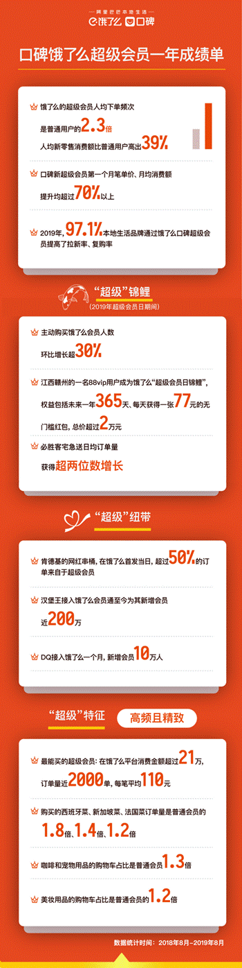 數據顯示,2019年,97.1%本地生活品牌通過口碑餓了么超級會員,顯著提升了拉新和復購率。