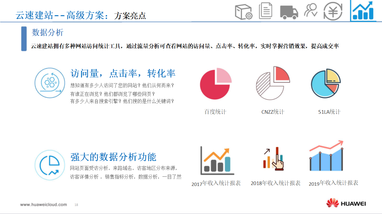 針對訴求更高的企業,華為云推出高階版云速建站服務,在標準版基礎上增加完善的電商管理措施,分銷和各種營銷工具等。