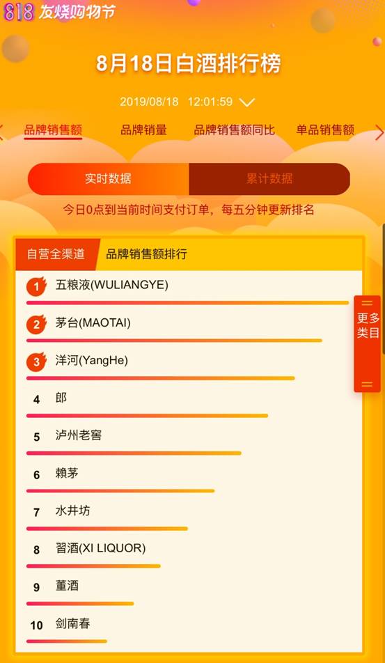 悟空榜數據顯示,截至18日中午12點,紅星、洋河、瀘州老窖成為銷量最高的白酒品牌,銷售額方面,五糧液奪冠,茅臺、洋河步步緊逼。長城、奔富、張裕在紅酒中最受消費者歡迎,雪花、哈爾濱和青島奪得啤酒三魁。