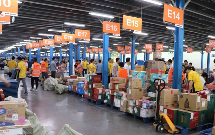 蘇寧物流基地內,已經火力全開,火箭哥將把消費者下單的商品準時送達。