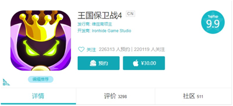 在22萬人預約、國服版遲遲不上線的情況下,《王國保衛戰4》在taptap上保持著9.9分可以說是一件“不可思議的事”