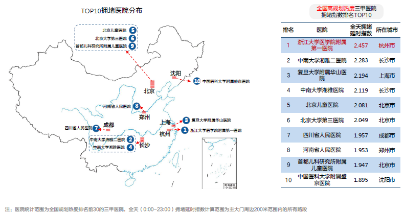 醫院門口交通擁堵,尤其是醫療資源豐富的三甲醫院,幾乎成了各大城市普遍存在的通病。根據高德地圖“明鏡”系統監測,三季度中國主要三甲醫院“擁堵”榜單出爐。在全國規劃熱度最高的前30所三甲醫院中,浙江大學醫學院附屬第一醫院周邊道路擁堵最嚴重,全天擁堵延時指數高達2.457。上榜前十的醫院中:北京市有3所醫院上榜,長沙有2所醫院上榜,上海、成都、鄭州、沈陽各有1所醫院上榜。