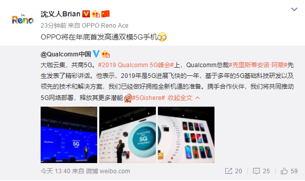 而OPPO則在2019高通5G峰會期間,明確表態將在年底首發高通雙模5G手機。并表態作為終端廠商,OPPO將與網絡和資費共振,于12月發布高通雙模5G手機,為用戶帶來更完善的5G體驗,加速5G普及。