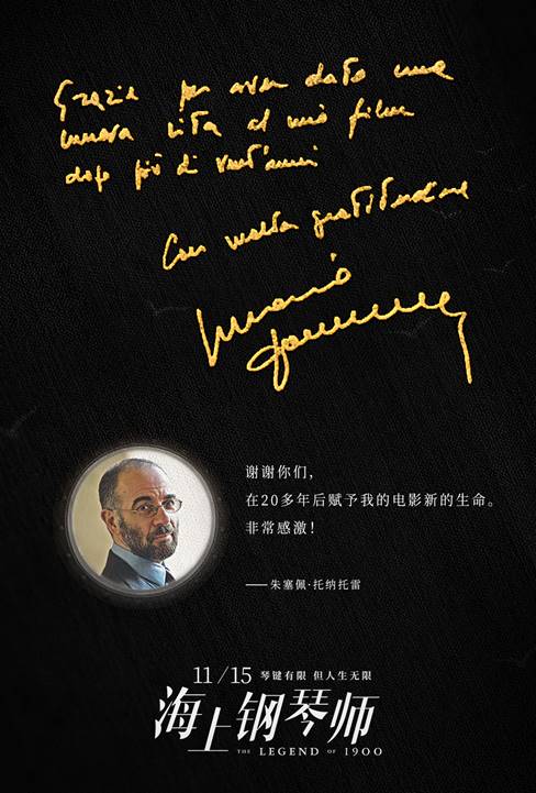 “謝謝你們,在20多年后賦予我的電影新的生命。非常感激!”作為一手締造《海上鋼琴師》的傳奇導演,朱塞佩·托納托雷此次特地為中國觀眾寫了一封親筆信并錄制問候視頻。他在視頻中表示,二十多年后的今天,《海上鋼琴師》可以進入中國的電影院和中國觀眾見面,是給了電影第二次生命,他感到非常的幸福。