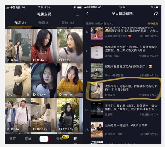 正是通過“加減法”的不斷衡量和取舍,在不到一個(gè)月的時(shí)間,“聽朋友說”就出了2條爆款內(nèi)容,最高播放量2000多萬,點(diǎn)贊超90萬,成功占據(jù)抖音當(dāng)日最熱視頻TOP9?!坝眯淖龊脙?nèi)容,這一點(diǎn)支持我們從0走到1,也將激勵(lì)我們一直向前。”王佩總結(jié)。