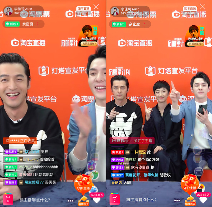 速途網12月4日消息(報道:李楠)今晚9點,電影《南方車站的聚會》主演胡歌、桂綸鎂來到了“口紅一哥”李佳琦的淘寶直播間,通過燈塔×淘寶直播共同搭建的“沖擊播”線上路演,現場與粉絲交流互動。