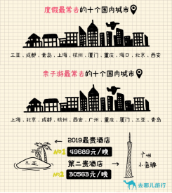 去哪兒網旅游專家認為,這一結果綜合了各個旅行群體的不同需求。比如親子游和全家游旅行群體通常希望目的地城市靠近海邊,孩子可以在沙灘奔跑玩耍。他們偏好的目的地是上海、北京、成都、杭州、西安、廣州、重慶、廈門、三亞和青島。