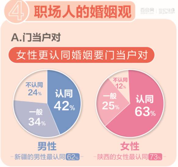 《報告》顯示:單身男性比單身女性更孤單;最渴望脫單成功的是95后和90后男性;四成女性不能接受辦公室戀情,比例遠高于男性;戀人的職業是女性擇偶標準的重中之重,超半數女性對戀人有職業要求;六成女性認同結婚要門當戶對的說法;大部分女性和男性不愿意自己或者伴侶當全職主婦。