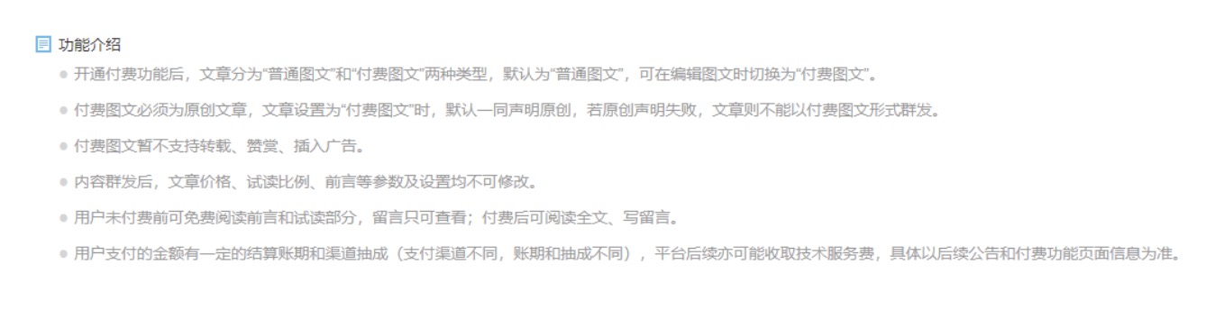 速途網(wǎng)訊 日前,微信宣布正在灰度測試訂閱號付費圖文功能。開通付費功能后,文章將分為“普通圖文”和“付費圖文”兩種類型,付費圖文必須是原創(chuàng)文章。對于付費圖文,用戶未付費前可免費閱讀前言和試讀部分,留言只可查看;付費后可以閱讀全文、寫留言。