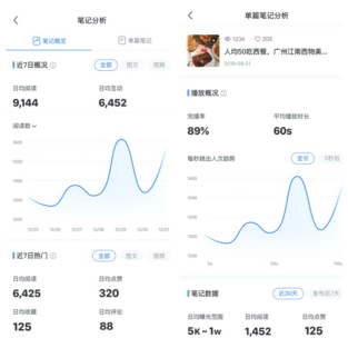 通過創(chuàng)作者中心的數(shù)據(jù)看板,創(chuàng)作者可以直觀地看到筆記詳細數(shù)據(jù),包括筆記閱讀量、互動量等等。針對過去一年發(fā)布量大幅上漲的視頻筆記,創(chuàng)作者中心還會提供單條視頻筆記的完播率、平均播放時長,幫助創(chuàng)作者更清晰地知道如何優(yōu)化視頻內容和節(jié)奏。