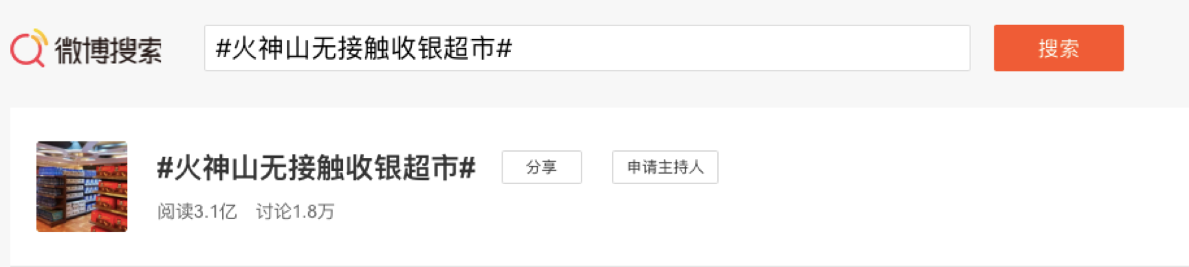 不久前,隨著火神山醫院的交付使用,一家沒有店員、沒有收銀員,買完東西掃碼即走的無接觸收銀超市也在網絡走紅,一度登上微博熱搜,并收獲了超過3億的閱讀量和1.8萬討論。
