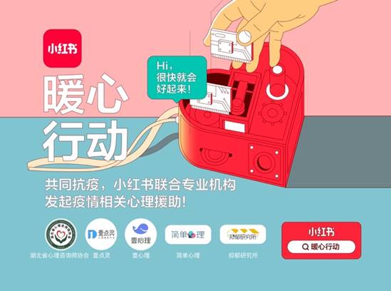在心理援助平臺上線之前,小紅書已邀請湖北省心理咨詢師協會、壹點靈、壹心理、簡單心理、抑郁研究所等咨詢機構的專家在小紅書參與“武漢加油”的公益直播,通過直播連線等方式,向普通用戶科普疫情期間心理調節的重要性及簡單的自我調節方式,輔助調節心理狀態。