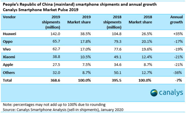 2019年,雖然對于國內(nèi)來說正值5G商用元年,但是直到11月運(yùn)營商套餐上線的姍姍來遲,讓手機(jī)行業(yè)面臨“后4G時(shí)代”,消費(fèi)者普遍持幣觀望的“青黃不接”。根據(jù)Canalys數(shù)據(jù)顯示,除華為國內(nèi)出貨量了大漲35%外,其他各家都在謹(jǐn)慎對待出貨量,在5G過渡期內(nèi),使得庫存維持在健康的水平線內(nèi)。