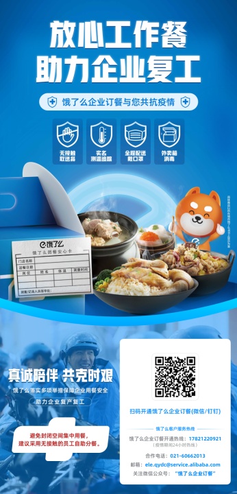 從2月10日企業復工首日以來,餓了么的企業團餐首批已經在上海、北京、河北等多個省市落地。一方面,餓了么為連鎖型企業解決分布式就餐問題,一方面,幫助園區解決多個企業用餐問題。