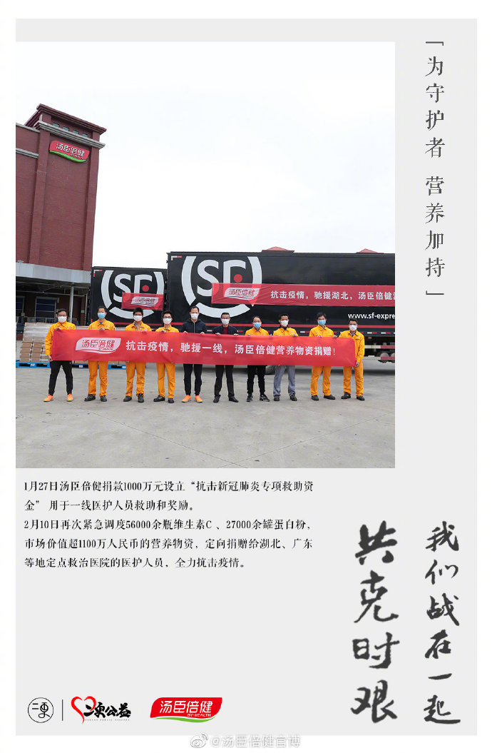湯臣倍健:再次定向捐贈1100萬元營養物資馳援一線 仙雯 ? 2020年2月12日 09:30 ? 快訊, 新消費 速途網訊 昨日,湯臣倍健表示,繼1月27日捐款1000萬元設立“抗擊新冠肺炎專項救助資金”用于一線醫護人員救助和獎勵后,2月10日再次捐贈市場價值超1100萬元的營養物資,包括維生素C、蛋白粉等產品,定向捐贈給湖北、廣東等地定點救治醫院的醫護人員。 湯臣倍健 贊 (0) 仙雯 0 生成海報 Facebook繼續發力AI,收購創企Scape Technologies 上一篇 2020年2月12日 09:22 Lyft 2019年第四季度營收10.171億美元,同比增長52% 下一篇 2020年2月12日 09:33