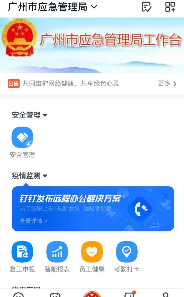 作為制造業重鎮,廣州市發布通知明確涉及疫情防控必需、保障城市運行和企業生產必需、群眾生活必需等企業將優先復工。為此,廣州市應急管理局聯合阿里巴巴部署上線基于釘釘端的企業復工復產管理平臺。同時該平臺也具備企業申報復工、員工健康監測和每日打卡等功能。