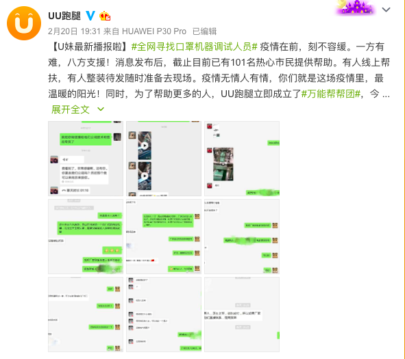 速途網(wǎng)2月21日消息(報(bào)道:吳佳馨)近日,UU跑腿發(fā)布緊急幫幫信息,全網(wǎng)尋找會(huì)調(diào)試口罩機(jī)器的師傅。