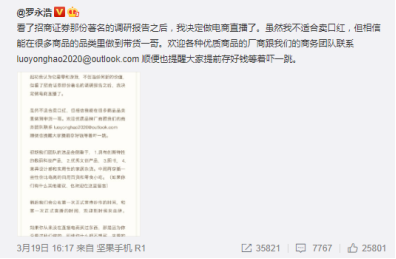 還是熟悉的畫風,不管結果如何氣勢一定要足。在宣言中,老羅強調,雖然自己不適合賣口紅,但相信能在很多商品品類中成為帶貨一哥。并在隨后與網友不斷互動,言語之間皆是對“帶貨一哥”的勢在必得。