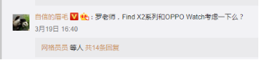 羅永浩宣布進軍直播帶貨后,OPPO副總裁沈義人便在評論區連發兩條問可否與羅永浩進行合作。威馬汽車沈暉也在線應援,稱威馬汽車可能是最大的智能硬件,一起來做第一場吧。