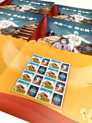 速途網3月31日消息(報道:李楠)近日,嘀嗒出行委托中國郵政定制了主題為《萬眾一心,齊心抗疫》的個性化紀念郵票,郵票由主票和副票兩部分組成,其中主票為莊嚴肅穆的天安門形象,副票則由“萬眾一心齊心抗疫”以及由醫護、軍人、出租車司機和媒體記者組成的抗疫群像兩個部分組成。