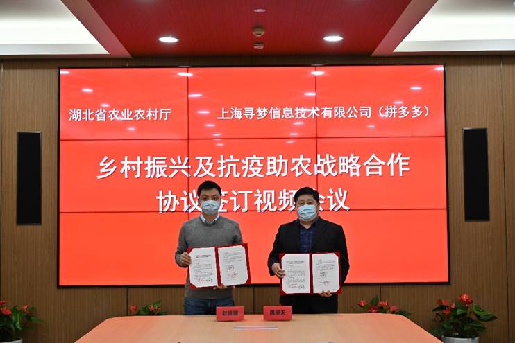 速途網4月1日消息(報道:李楠)為助力湖北農產品迅速流通,方便消費者購買湖北特色農產品,湖北省農業農村廳與拼多多達成戰略合作。今日,湖北省農業農村廳與拼多多合作,共同簽署了《“鄉村振興及抗疫助農”戰略合作協議》。