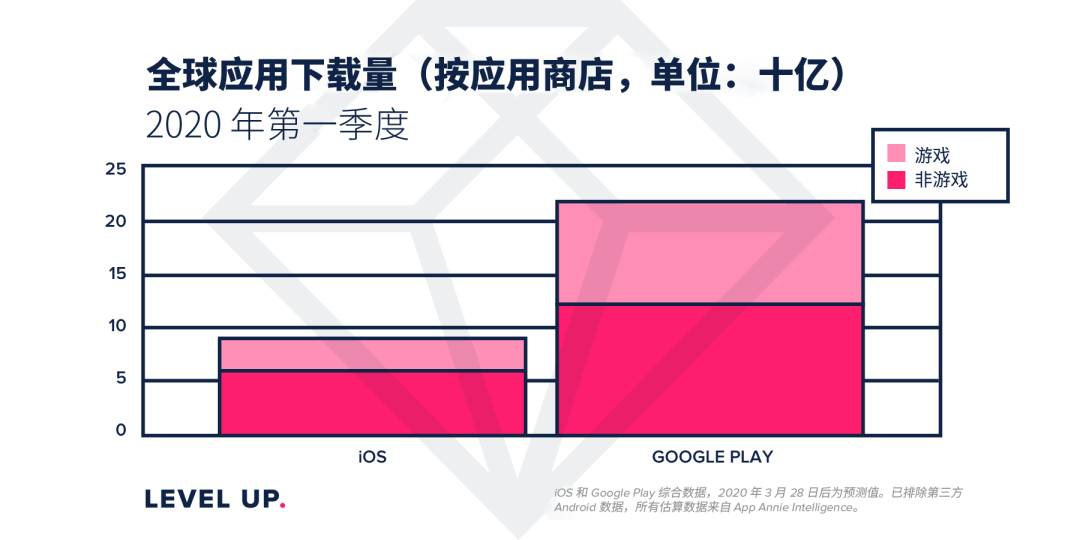 速途網訊 今日,據App Annie最新報告,在2020年第一季度,Google Play的下載量同比增長了5%,達到225億次;iOS的下載量同比增長了15%,季度新增下載量超 90億次。在Google Play上,非游戲類應用的下載量占總下載量的55%;iOS App Store中這一比例略高,達到65%。