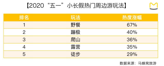 馬蜂窩旅游大數(shù)據(jù)顯示,從清明到“五一”,周邊游熱度持續(xù)上升,全國(guó)最熱門的100個(gè)鄉(xiāng)村周邊旅游城市平均熱度漲幅110.3%。“與清明小長(zhǎng)假相比,今年‘五一’假期的出游時(shí)間顯然更加充裕。鄉(xiāng)村游具有人口密度低、以戶外景點(diǎn)為主的特點(diǎn),結(jié)合特色住宿、鄉(xiāng)村文化的近郊鄉(xiāng)村旅游回暖明顯。”?馬蜂窩旅游研究中心負(fù)責(zé)人馮饒介紹。