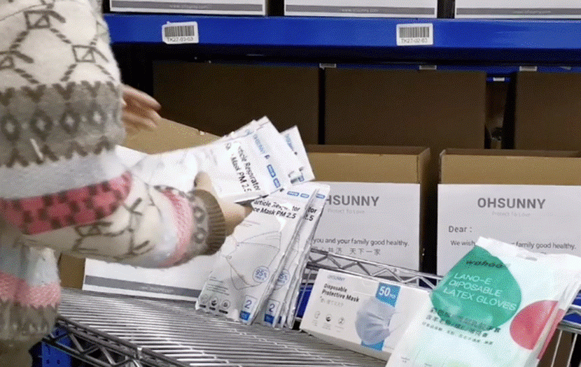 最近,功能性防護商家OhSunny的無錫園區里,工人和叉車們格外繁忙。為保障海外供應,專門調配了一組幾十個工人來進行健康包的分類和打包。