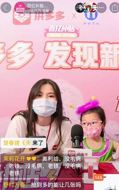 在新世界城的拼多多直播間內,樂樂無意中突然闖入,成為了當天一千多家直播間內年齡最小的“主播”,也給直播間內的194.11萬觀眾帶來了意外驚喜。