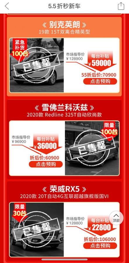 據(jù)拼多多汽車業(yè)務負責人千羽介紹,截至5月5日晚上9點,包括55臺凱迪拉克等三款上海地區(qū)專享的車型,以及500多臺別克英朗等四款全國可售的車型在內,本次“五五購物節(jié)”準備的上汽集團旗下品牌車型,經過5輪補貨,已經累積售出超過600臺。