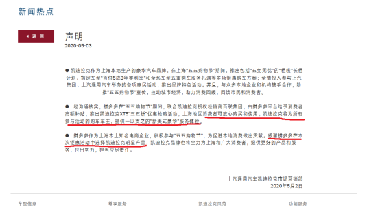 此外,盡管本次賣車此前曾被質疑,但合作方凱迪拉克也及時發布官方聲明消除誤會,讓上海消費者放心選購。