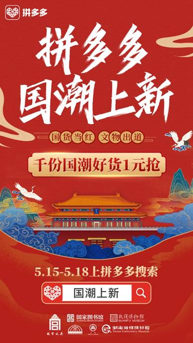 此外,中國國家博物館、中國國家圖書館、天壇公園還將先后在拼多多平臺同步直播,用戶只需打開拼多多APP,搜索“國潮上新”即可進入到專題頁面。