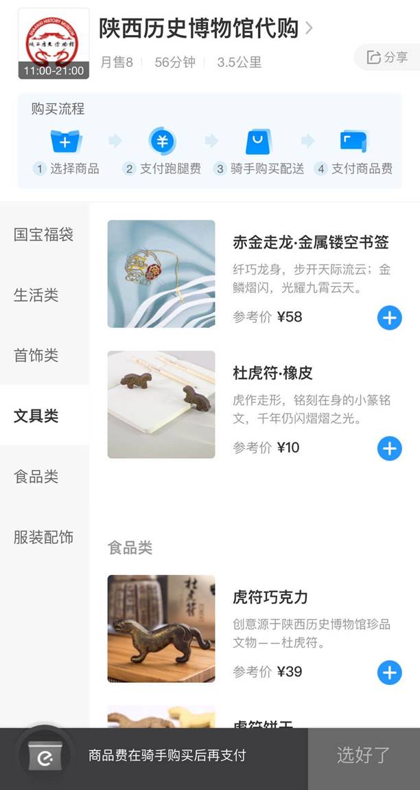 此次上線餓了么的陜西歷史博物館的貨架上,既有脫胎于館藏文物“皇后玉璽”的異形公交卡,也有“葡萄花鳥紋香囊掛飾”,還有具有“國寶味道”的“虎符巧克力”和“虎符餅干”,“不僅能解決博物館文創產品傳統的銷售問題”,“也凸顯了博物館文創產品的教育功能”,陜西歷史博物館文化產業部副部長李博雅認為,“博物館作為一個公共文化服務機構,需要以包容、開放的心態與不同的機構與群體展開對話并提供多樣化的服務”。