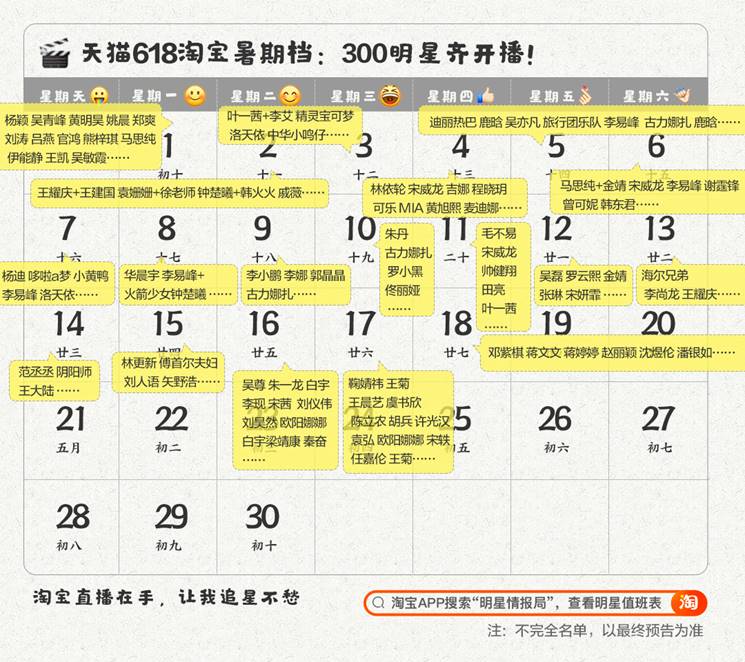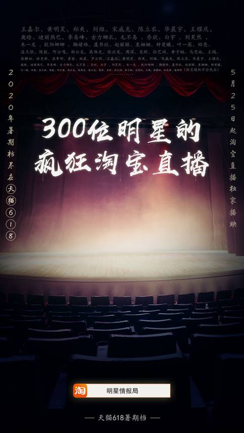 速途網(wǎng)5月27日消息(報(bào)道:李楠)今日,天貓618首批明星直播名單公布:300多明星集體上淘寶直播,將掀起史上最大規(guī)模的明星開播潮。