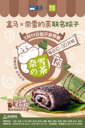 速途網5月29日消息(報道:吳佳馨)今日,盒馬在官微宣布,與奈雪的茶聯名的粽子開啟連續7天的全國預售。