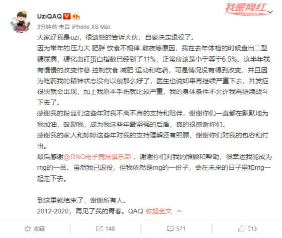 最后感謝RNG電子競技俱樂部 ,謝謝你們對我的照顧和幫助,很幸運我能成為rng的一員。雖然我已退役,但我依然是rng的一份子,會在未來的日子里和rng一起走下去。