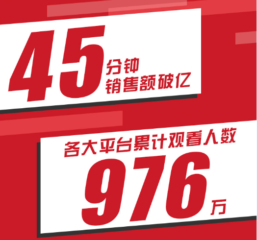 這是賈乃亮、郭京飛、岳云鵬、雷佳音首次聯手直播帶貨,直播開播45分鐘,銷售額輕松破億,全場銷售總額超4.15億元。伊利安慕希希臘風味酸奶、蘇寧極物螺螄粉、蘋果 Airpods(有線充電盒)、維他檸檬茶、蒂佳婷藥丸補水面膜占據銷量榜前五名。其中,1元百事可樂僅31秒被搶購一空,成為全場人氣之星。創維創造全場最高銷售額,烤鴨蛋和螺螄粉累計補貨9次,摘得“補貨王”稱號。