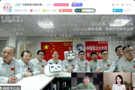 直播中,新華社記者張揚、B站UP主盜月社沐上以主播身份與資深南極記者劉詩平連線,暢聊南極故事。在“南極萬象云講堂”環節,中國第36次南極科考隊大洋考察隊隊長羅光富、北京師范大學生命科學學院教授鄧文洪等多位南極專家還對南極的鳥類、海洋生物、建筑、醫學等知識等作了生動科普。兩個多小時的直播,峰值人氣達到140多萬,在歡樂的彈幕中圓滿結束。